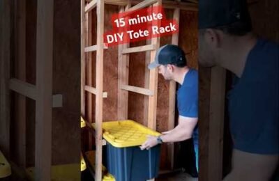 Easiest DIY Tote Rack to build for your shed or garage storage. FREE Plans in the main video.
