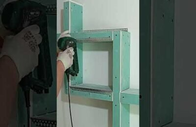 Check out this modern floating shelf – built entirely from drywall! Just drywall, metal track, screws, tape, and finish. Perfect